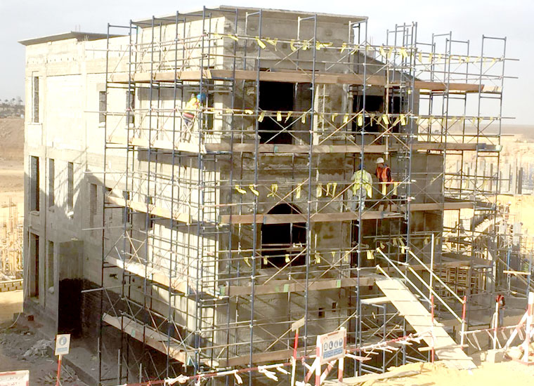 النظام المستخدم :  . سقالات خارجية ( نظام الشبابيك H )